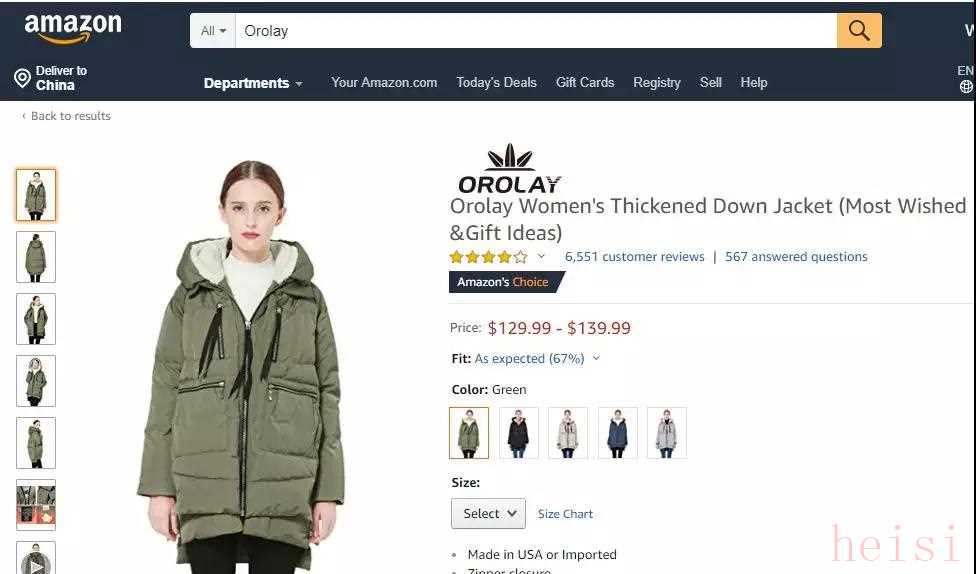 目前,Orolay羽绒服在美国的销售几乎全部通过亚马逊网站,占据了公司总收入的70%。