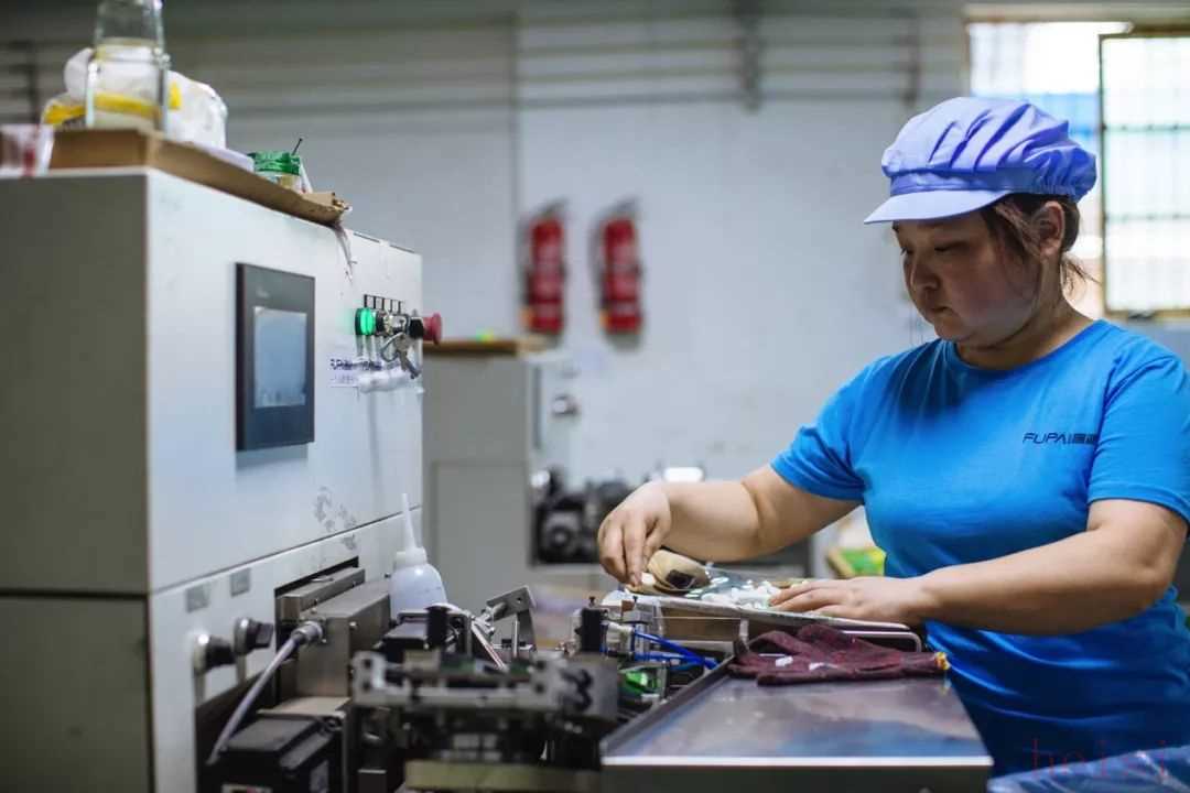福派电动牙刷生产车间,一名工人正在装刷毛