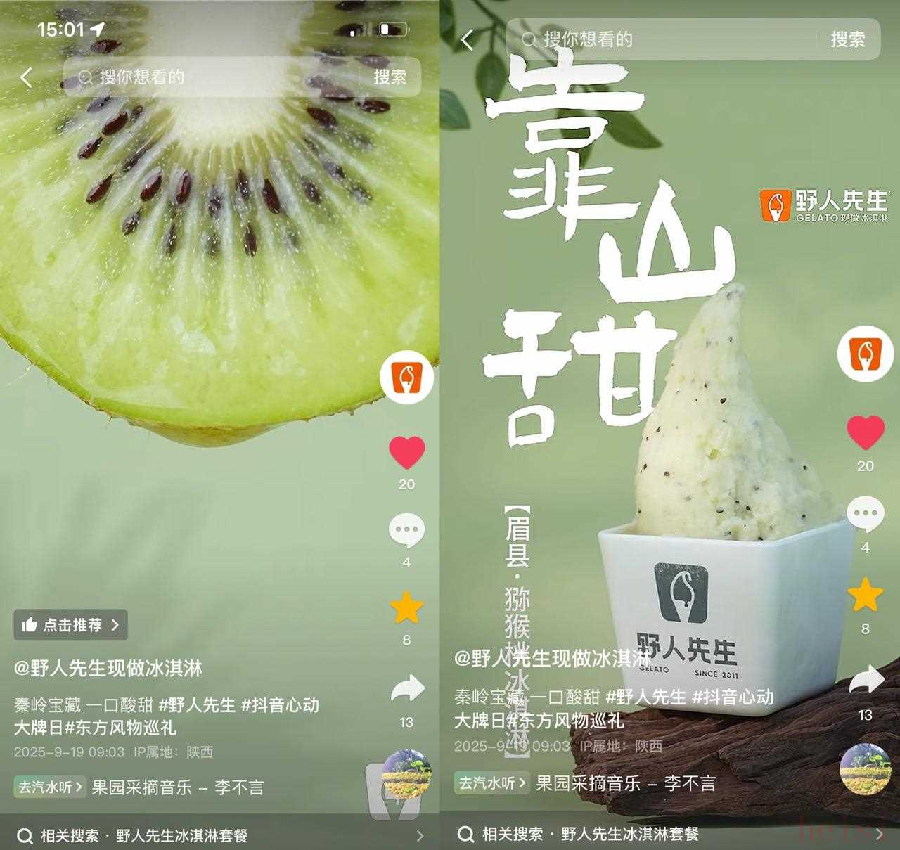 野人先生抖音短视频介绍猕猴桃口味冰淇淋。 受访者供图