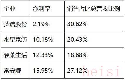 而这样的成绩,还是建立在投入最高水平的销售费用之上。据wind数据显示,在上述四大一线家纺品牌中,仅有梦洁股份销售费用占总营收的比例高达3成以上。
