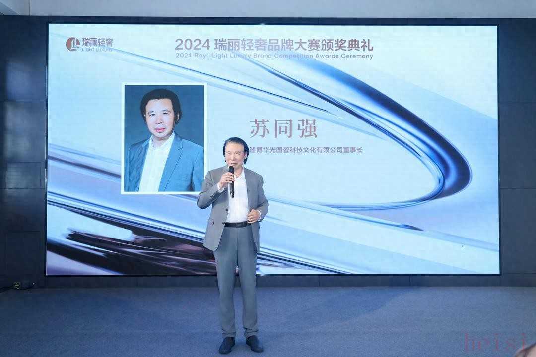 4月27日,“第五届瑞丽轻奢品牌大赛”颁奖典礼在北京举行。华光国瓷董事长苏同强获得“品牌先锋人物奖”,华光国瓷作品“月光水岸”系列获得轻奢品质银奖,并现场分享国瓷品牌闪耀之路。