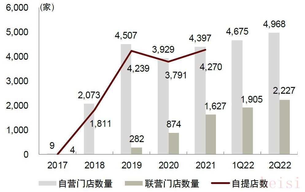 3月中旬起受国内疫情影响,线下咖啡销售同比下降显著。2022年3-5月国内多地疫情反复,其中一线城市受影响较大(深圳、上海、广州、北京等地先后限制线下堂食),线下门店营业及客流恢复受到较大影响。品牌端来看,线下门店业务占比较高的星巴克中国2Q22同店销售同比下降44%,其中交易量下降43%、客单价下降1%;而以外卖、自提为主的瑞幸咖啡自营店2Q22同店销售同比增长41%。