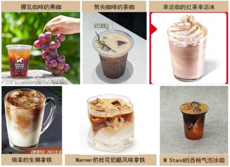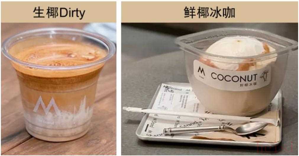 产品创新是咖啡品牌维持产品力的关键手段,主要体现为咖啡饮品化趋势。持续推出高质量的新品能不断带给消费者新鲜感、增加消费频次,并维持和强化品牌势能。以瑞幸咖啡为例,其于2022年4月发布的新品椰云拿铁,2Q22销量已超2,400万杯,贡献了约4亿元门店总营业额,助力瑞幸咖啡2Q22营收同比+72.4%至33亿元。聚焦产品来看,区别于欧美人习惯饮用黑咖啡,中国人相较而言则对奶咖、果咖有所青睐。因此融合了水果、中式茶饮等多样元素的咖啡饮品近年来备受欢迎,既给消费者带来丰富的口感体验,有助于扩大消费群体、增加复购,也赋予品牌更多的创新可能,如瑞幸咖啡的生椰拿铁、鸳央咖啡的茶咖、Manner的桂花奶酪风味拿铁等。以M Stand为例,其近年来在小红书平台备受欢迎的单品主要以椰咖为主。