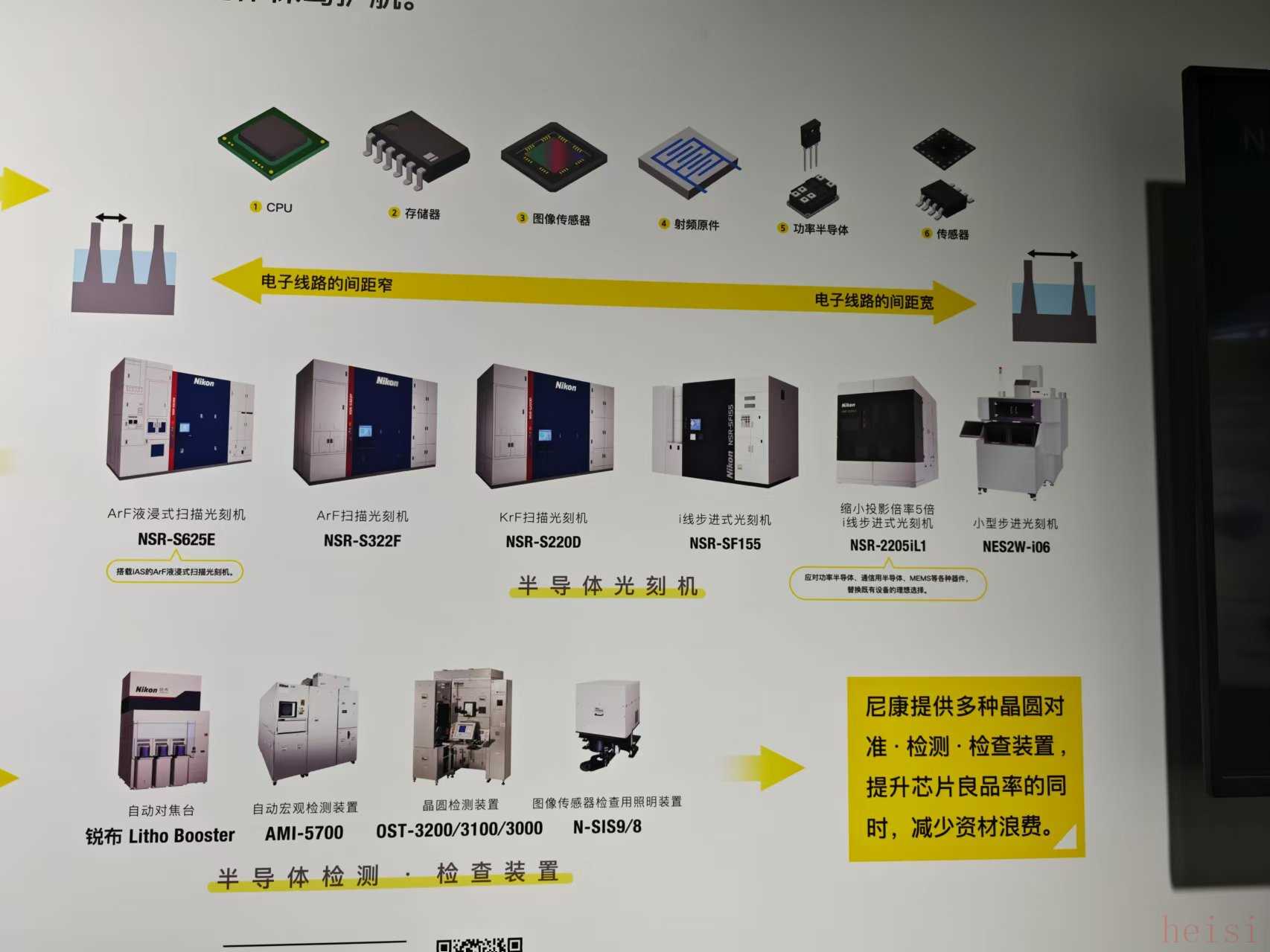 这次在进博会上,尼康也通过图文介绍了“i线步进式光刻机”等设备。有行业研报指出,i线光刻技术已经被深紫外光刻技术(DUV)所替代,但在针对部分旧款半导体工艺和制造流程、MEMS(微机电系统)制造、显示器制造、大型光掩模上仍需要使用i线光刻机。