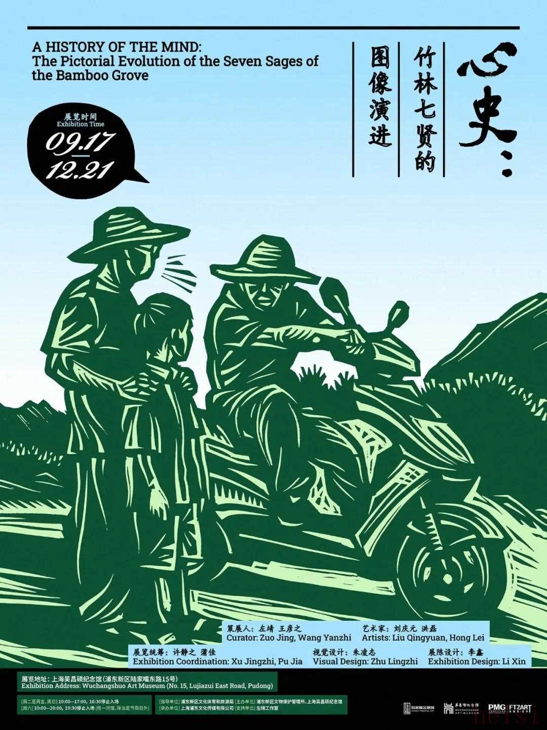 展览聚焦“竹林七贤”这一跨越千年的精神文化符号,寻找其在中国艺术史中的发展脉络,展示以吴昌硕先生为代表的海派艺术以及当代艺术家如何阐释“竹林七贤”。魏晋易代之际,嵇康、阮籍、山涛、向秀、刘伶、阮咸、王戎七位名士并称“竹林七贤”。七贤之像作为一个独特的精神文化符号,在中国乃至东亚的图像史上延续不绝。进入当代,竹林七贤成为更具开放性的创作母题。以洪磊为代表的当代艺术家,虽选择折返历史典故,却无意修葺前人画意,作品展现的,是当代个体对反叛与自由意识的探寻,以及对身处世界的情绪与精神波动的回应,颇有“一切历史都是当代史”之感。