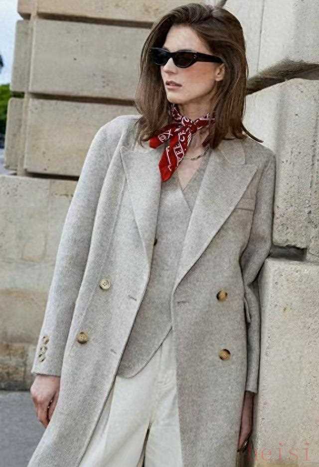 它不像去年爆火的奶油白那么“公主”,也不似传统驼色“太会计”,掺了一点灰调,黄皮穿上显干净,白皮直接反光板。