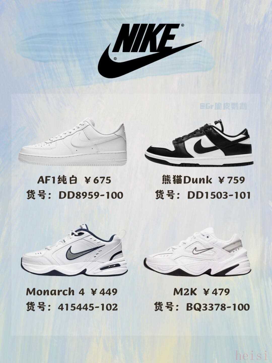 板鞋里纯白空军一号和熊猫 DUNK 很好穿,几乎不挑脚型。M2K 和 Monarch4 这类老爹鞋,有四五厘米厚底,结实耐穿,性价比超高!