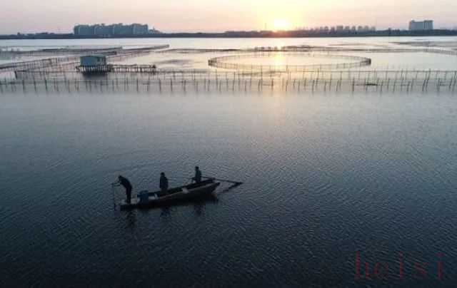 在江苏省昆山市巴城镇阳澄湖水域,蟹农在捕捞大闸蟹(2018年9月29日无人机拍摄)。新华社记者李响摄