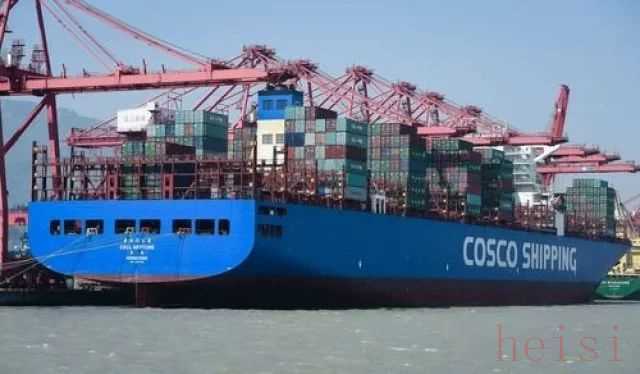 一艘满载排水量超过15万吨、最多可装载14074个标准箱的货轮停靠江苏连云港港口码头,在装载3089个集装箱后,于4月29日驶往青岛,开启波斯湾航线之旅(2017年4月28日摄)。新华社记者韩瑜庆摄
