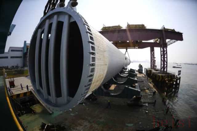 在江苏镇江,260万吨年沸腾床渣油锻焊加氢反应器正在进行吊装(2018年4月28日摄)。新华社记者李响摄