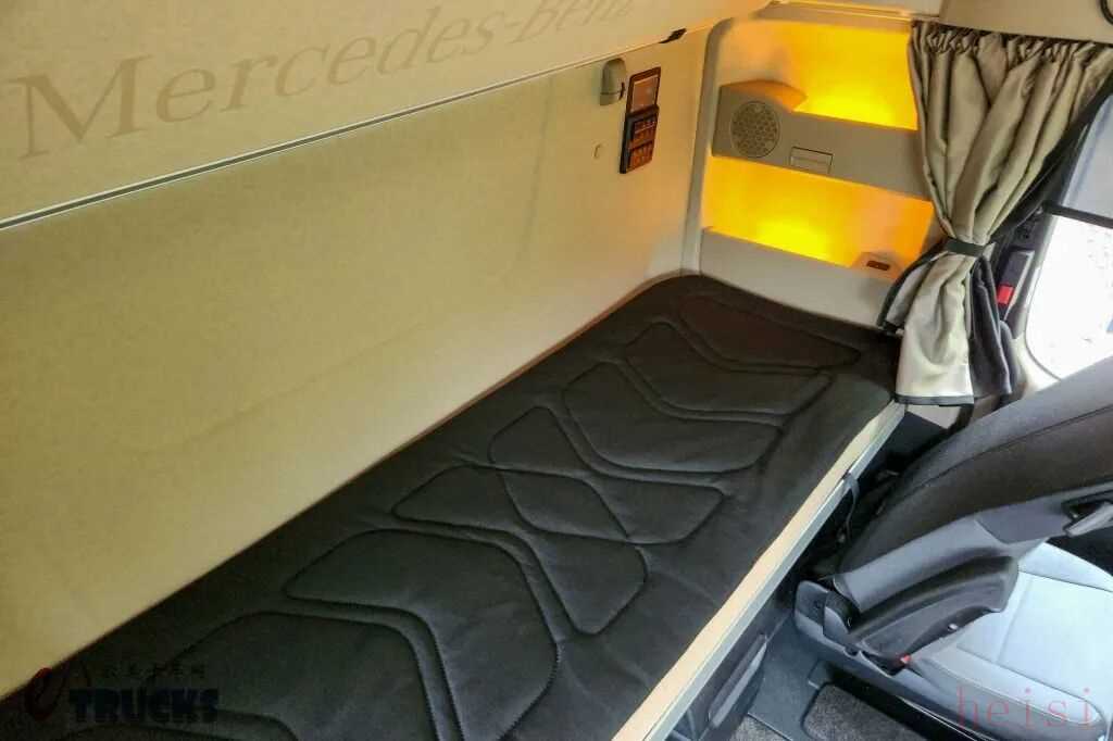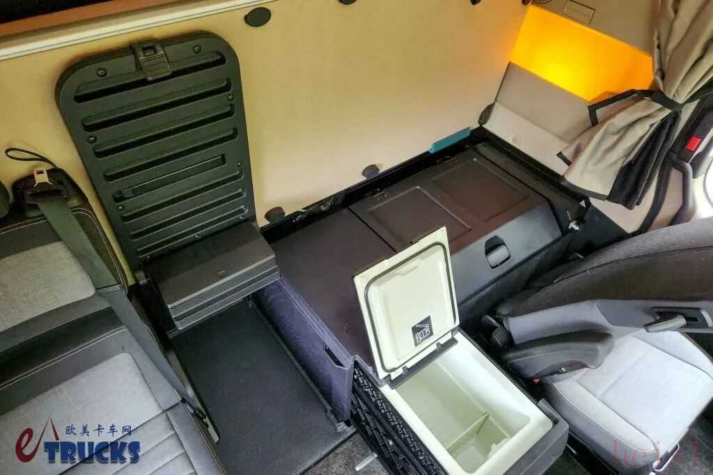 下卧铺改成折叠后,其宽度及床垫厚度也被削减,以此更好贴合在驾驶室后壁之上