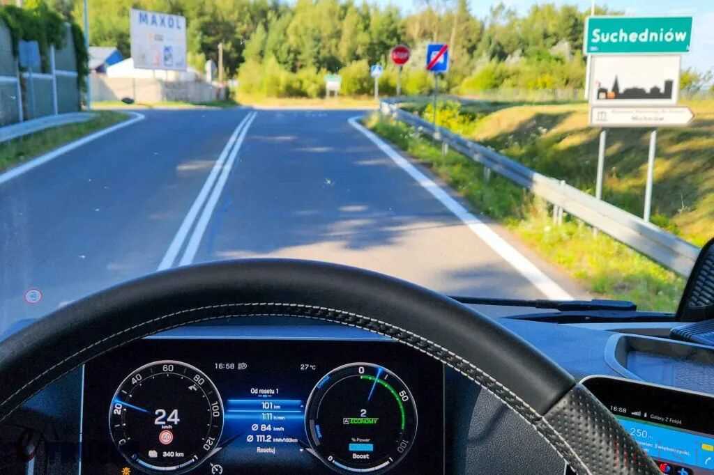 文章的最后,便是车辆的实际测试了。本次测试的车货总重为39吨,接近欧盟40吨总重限制,是极贴近现实的设置。在上坡逆风路段中,车辆跑出了112度/百公里的电耗。而在下坡路段中,车辆则跑出了77.5度/百公里的电耗,综合电耗为94.2度/百公里。考虑到eActros 600的可用电量高达600度,这样的电耗已足够实现500公里的续航里程。