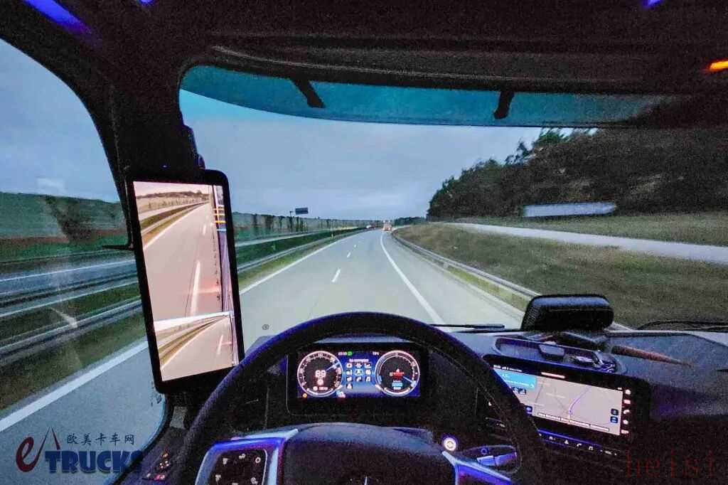 "驾驶体验:" eActros 600的驾驶体验非常平稳舒适,噪音和振动都得到了很好的控制。同时,它还配备了先进的驾驶辅助系统,例如自适应巡航控制和车道保持系统
