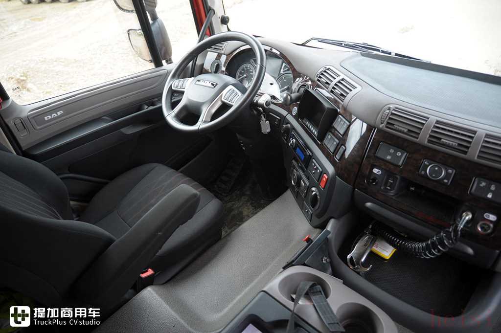 正如上文所说的一样,本车采用了来自达夫CF的驾驶室。虽然它并不是最宽敞的驾驶室,同时具有巨大的发动机鼓包,但好在一切操作都直观且方便,同时有着较高的自动化程度。