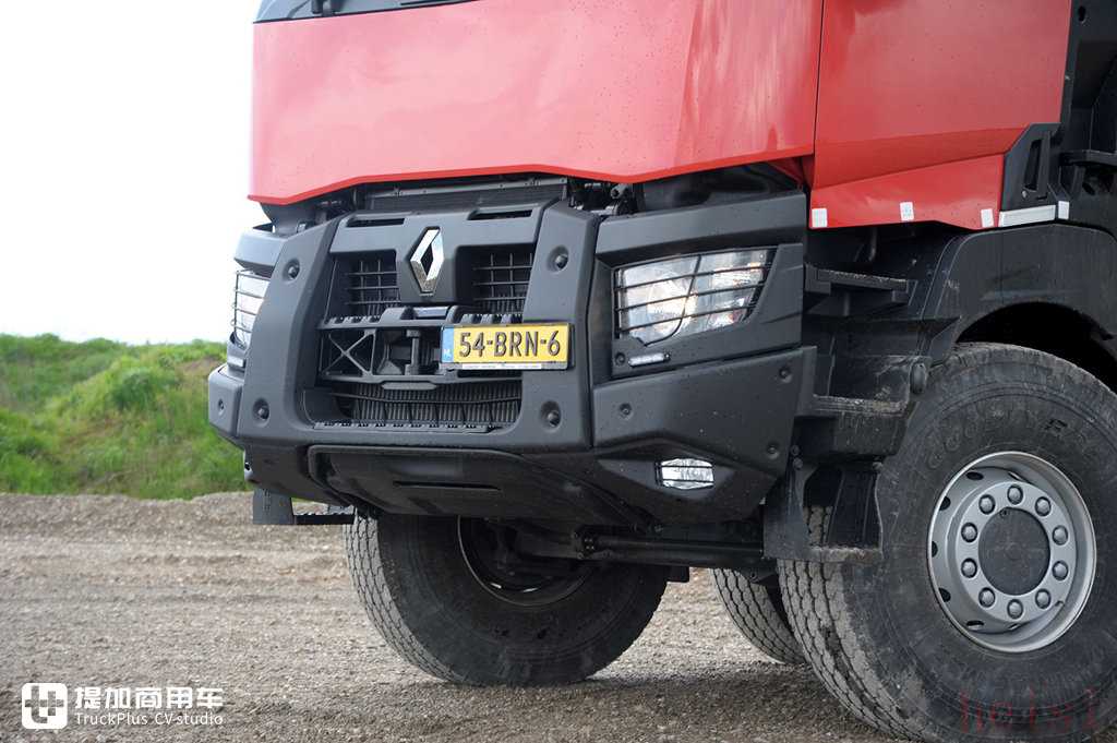 工程用重型卡车是雷诺一直以来的短板,而这台K480具有一切越野所需的功能,完美地补齐了这块短板。车辆安装的Optidriver变速箱(沃尔沃I-Shift变速箱的雷诺版本)具有两个爬行挡,能带来更好的动力表现。而它的传动轴和分动箱布置也十分特殊,前两轴的传动轴互相独立,单独传动,减少了损坏的风险。