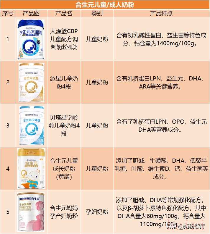 合生元在儿童粉、成人粉领域的产品布局延续其母婴专业形象,儿童粉如“派星”、“贝塔星”系列特别添加了乳桥蛋白LPN;同时推出了妈妈奶粉,含有较高含量的胆碱、β-胡萝卜素、DHA、钙等营养成分。