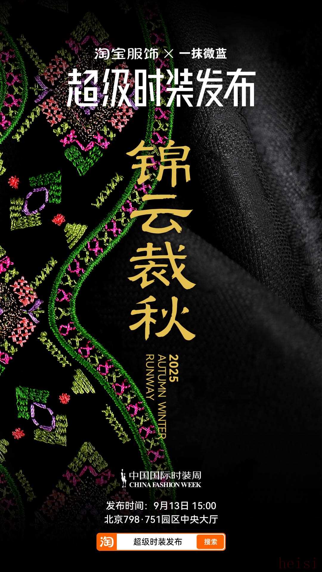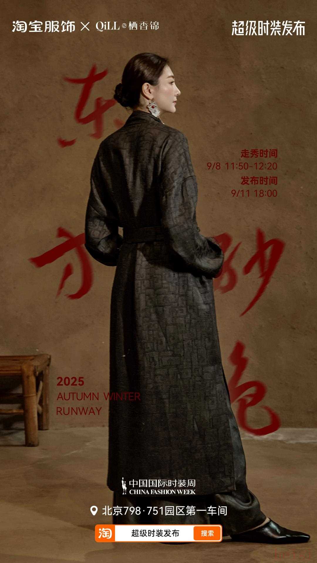 2025中国国际时装周(秋季)与淘宝服饰达成深度合作,在9月8日至12日期间,通过时装周秀场+“超级时装发布”直播间的双场景模式,带领栖香锦、一抹微蓝、ACDY三家淘宝原创品牌登上国际舞台。