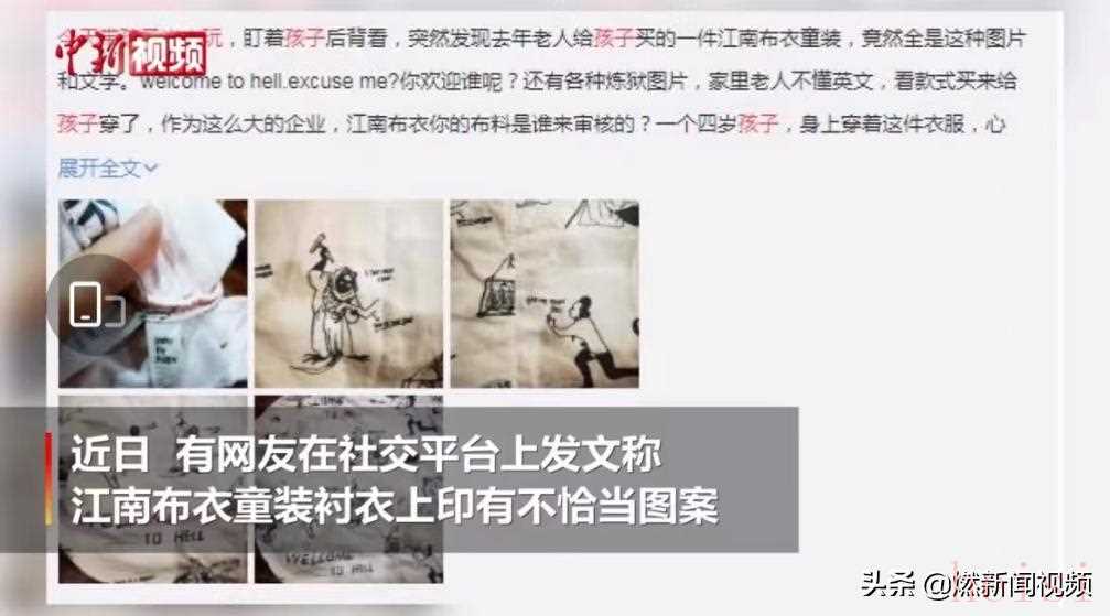 问题童装频现,如何加强监管? 作为孩子的贴身衣物,服装上的印花图案自然牵动着家长们的心。此前,江南布衣旗下的童装品牌“jnby by JNBY”就掀起了一阵轩然大波。 据媒体报道,2021年9月,有网友在社交媒体发文称,“jnby by JNBY”童装衬衣上印有“Welcome to hell”(欢迎来到地狱)、“Let me touch you”(让我摸摸你)等令人不适的文字,以及性暗示、虐待、杀戮和种族歧视等暗黑图案,引发社会舆论强烈质疑,被网友认为“邪恶”“软色情”和“别有用心”。 而后,“jnby by JNBY”官方微博发布道歉声明称,该品牌“以自由的想象力为理念,借助艺术的设计手法,创造更多童趣。”不过,品牌的此番回应并没有得到消费者的认可,被指责为“过于敷衍”。