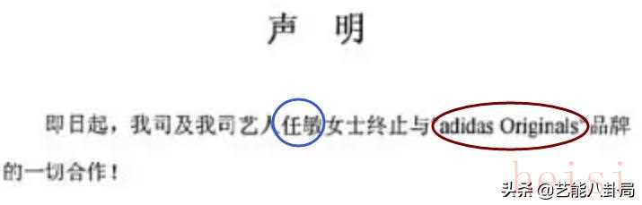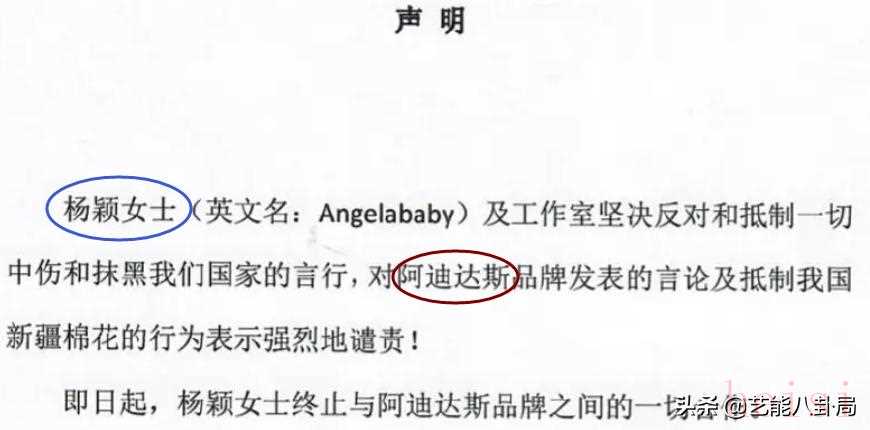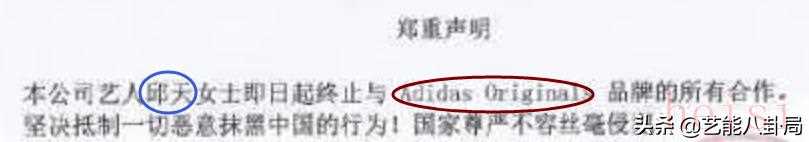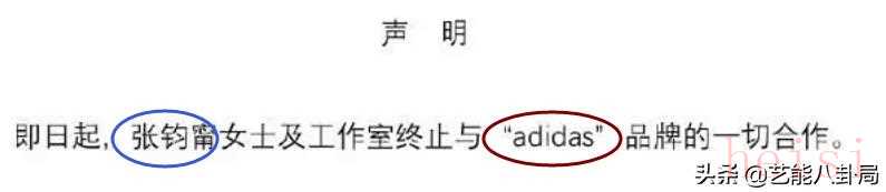 杨颖、刘亦菲、丁禹兮、任敏、邱天等,也声明结束和adidas的一切合作。