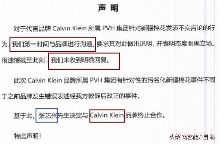 张艺兴,连发两条声明,终止了与Converse、Calvin Klein的合作。