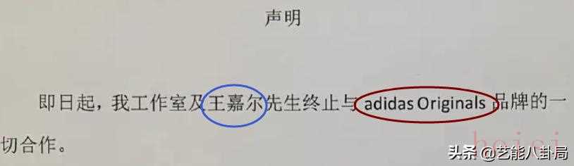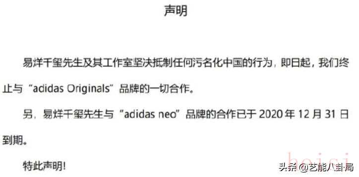 易烊千玺,终止与adidas Originals的一切合作。