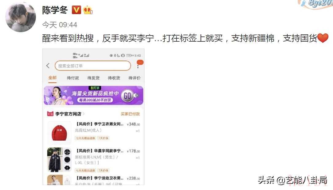 早上醒来看到热搜,他反手就买了国货,只要把“新疆棉”打在标签上的就买,还晒出了自己的购物清单。