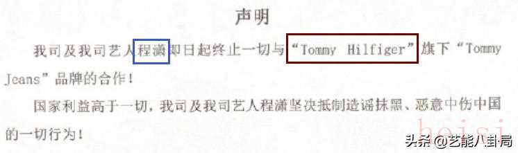 程潇,终止一切与Tommy Hilfiger的合作。