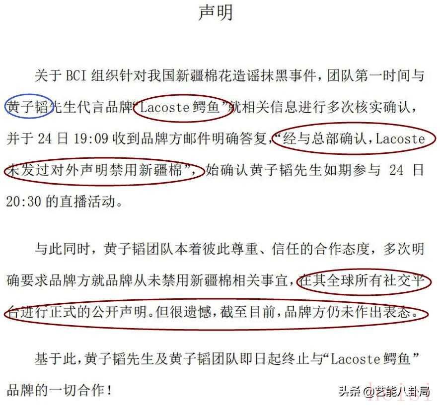 黄子韬,解约Lacoste鳄鱼。