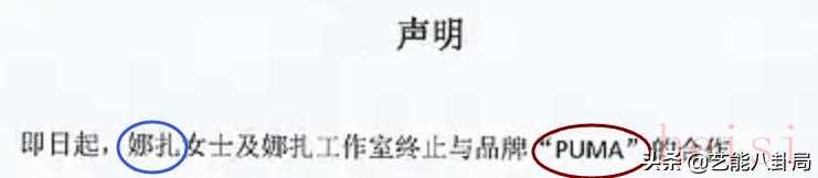 李现、娜扎、杨洋、刘昊然、刘雯,终止和puma的一切合作。
