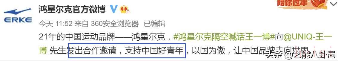 不过没关系,国货支棱起来了,鸿星尔克立即向王一博发出了合作,支持中国好青年。