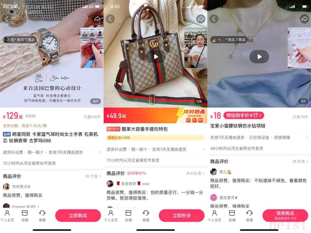 标价129元的卡家蓝气球时尚女士手表、标价49.9元的酷家大容量手提托特包、标价18元的宝家小蛮腰钛钢仿水钻项链......在直播间的卖货小黄车里,或许只有商家和时常流连于此的消费者,才会明白与便宜价格对应的“酷家”、“卡家”、“宝家”等关键词所指代的真正含义。