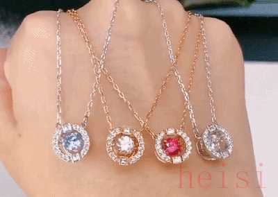 这是施华洛世奇家独特的悬浮技术和双臂悬挂设计,项链中间的圆形仿水晶会因为重心失衡而180°晃动。