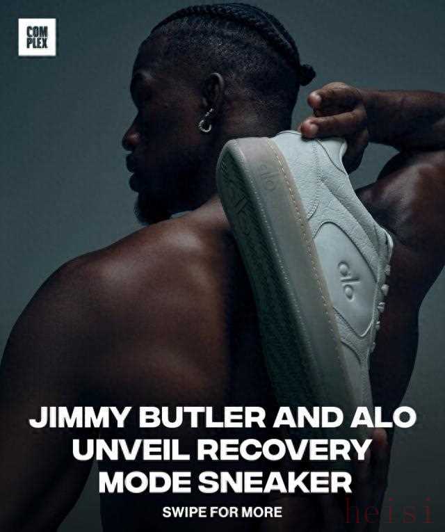 Alo,那个把瑜伽裤卖到Lululemon价还年年断货的品牌,第一次做鞋就拉上吉米·巴特勒——一个把咖啡卖到200块一杯还要排队的男人。俩人凑一起,不聊球,聊“下班怎么让脚不肿”。