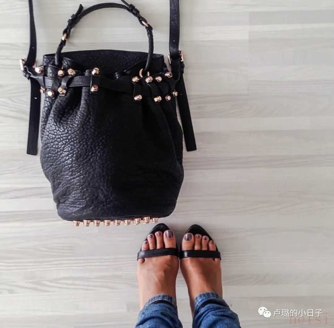 那时候大王家的包很火,尤其是被名媛希尔顿、超模米兰达·可儿这些时尚icon们背过后,火到不行。皮质和铆钉的设计,很中性,酷酷的。