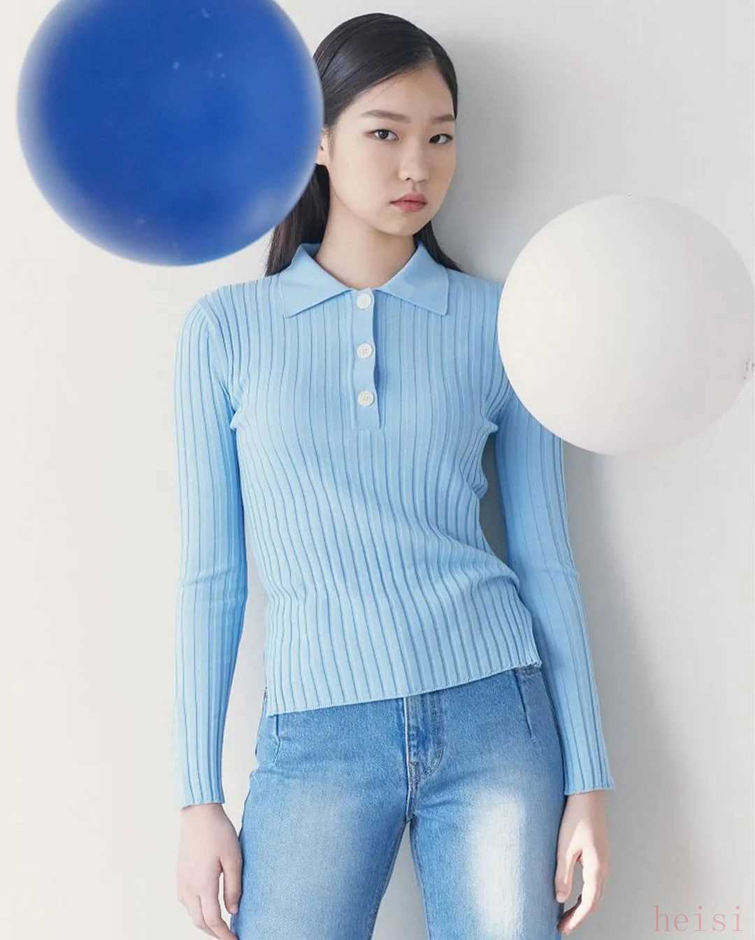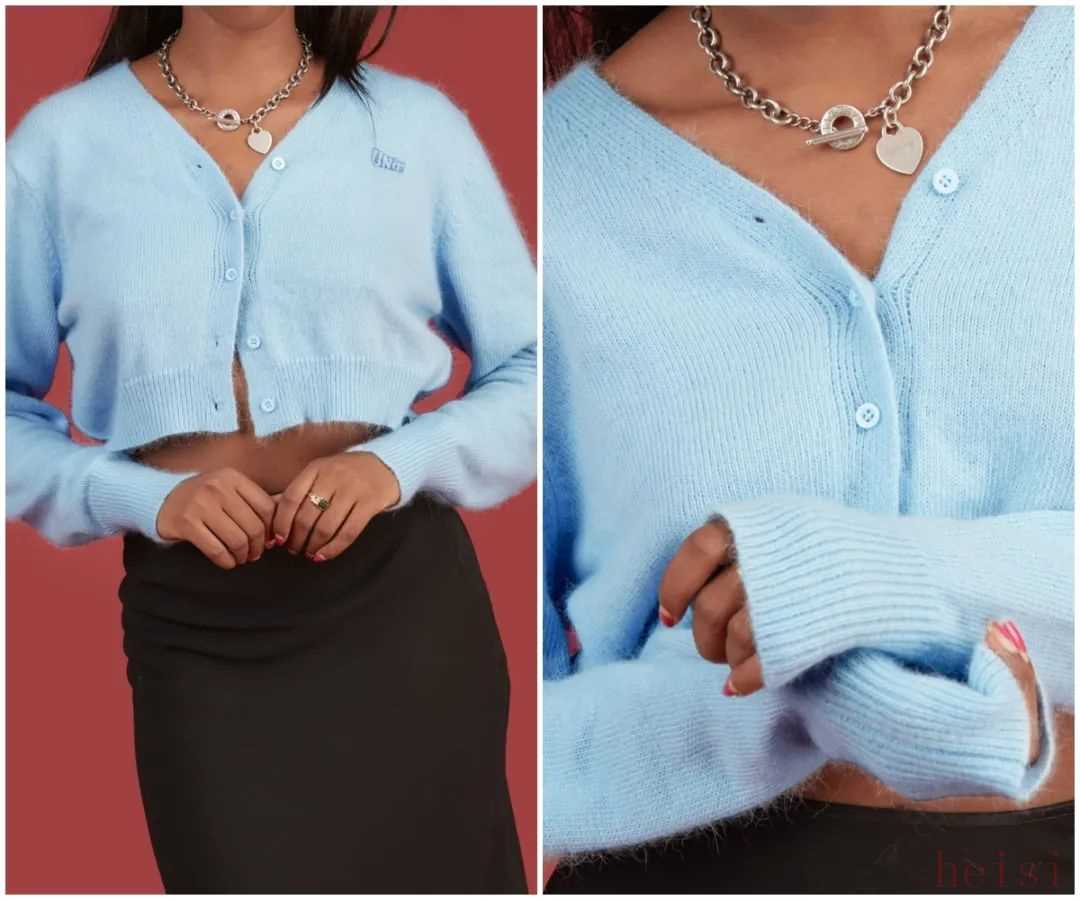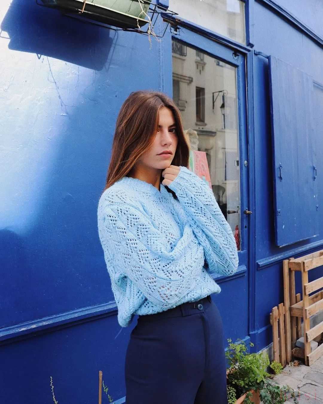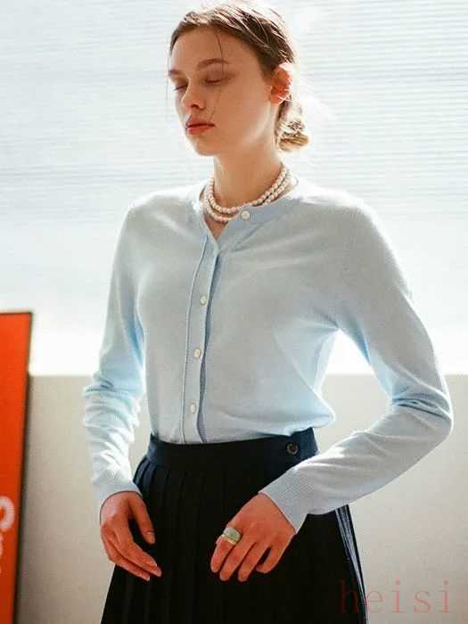 春天可以来一件薄一点的浅蔚蓝色针织衫。浅蔚蓝色放在柔软的面料上,竟显温柔。