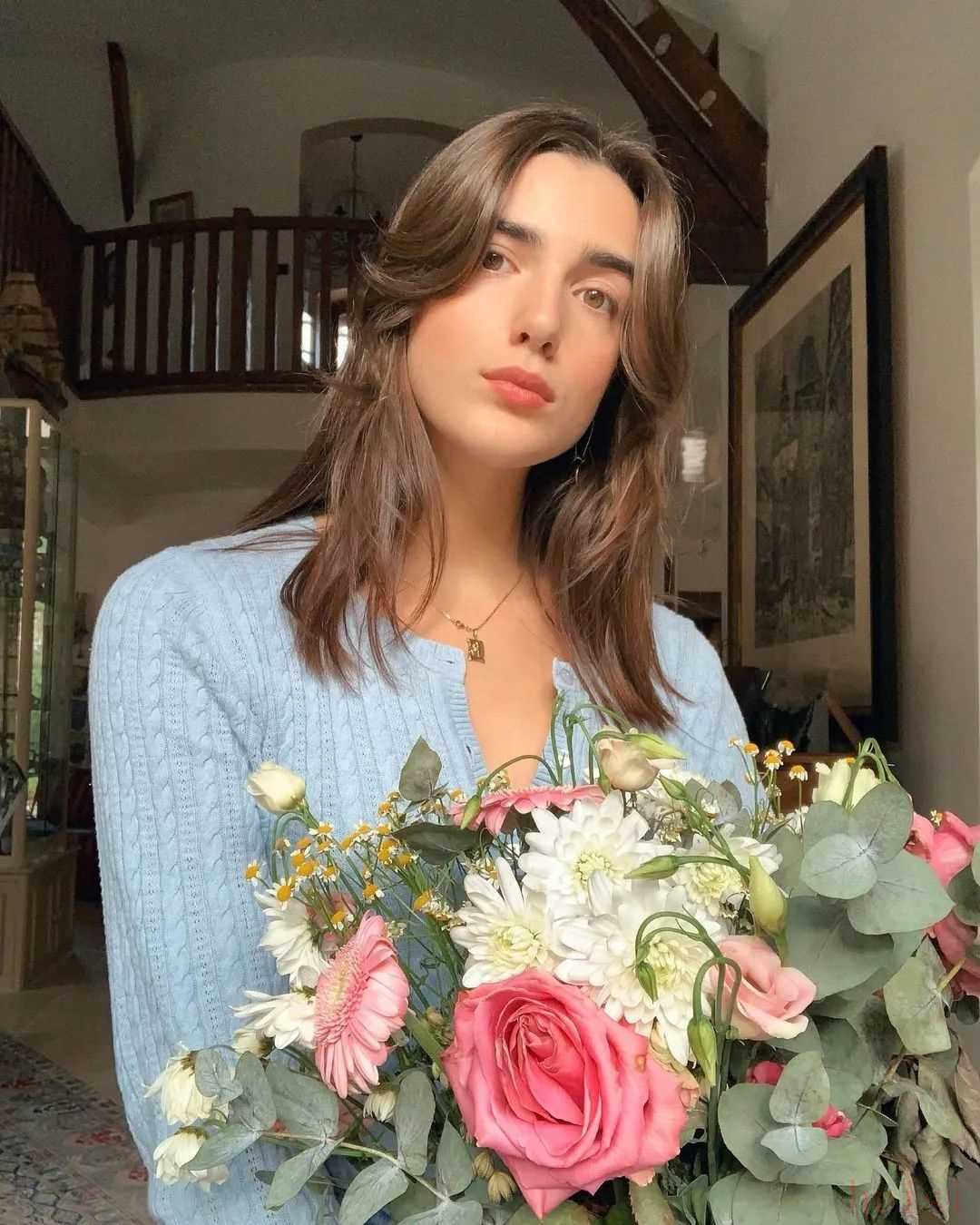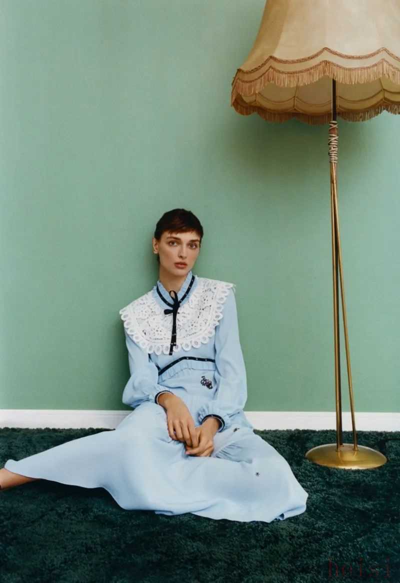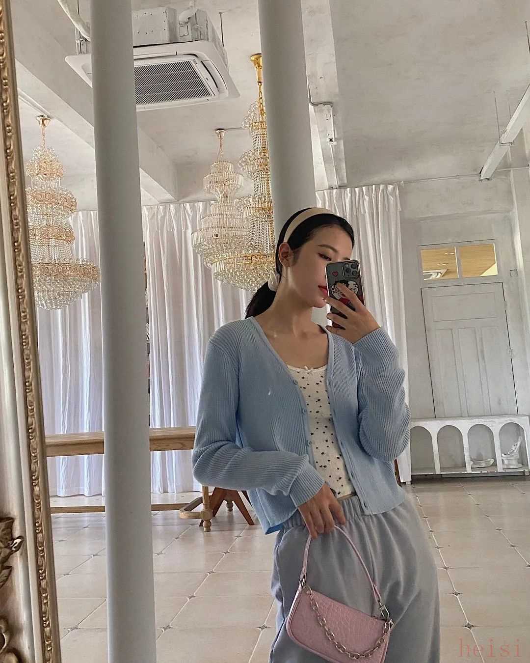 春天可以来一件薄一点的浅蔚蓝色针织衫。浅蔚蓝色放在柔软的面料上,竟显温柔。