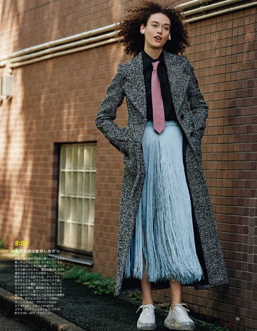 浅蔚蓝色和流苏材质放一起,灵动十足。Prada这条裙子非常火,我们之前也说过。浅蔚蓝色裙子冬天穿,和深色衣服搭配在一起也很好看。▼