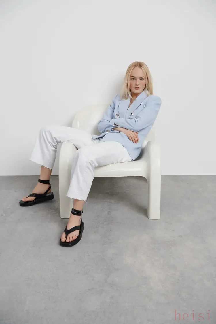 记得选Oversize款式的哦,紧身的西装会显得有点严肃。助理小妞冰鑫就故意买了加大号的浅蔚蓝色西装,给穿搭增添点帅气感。