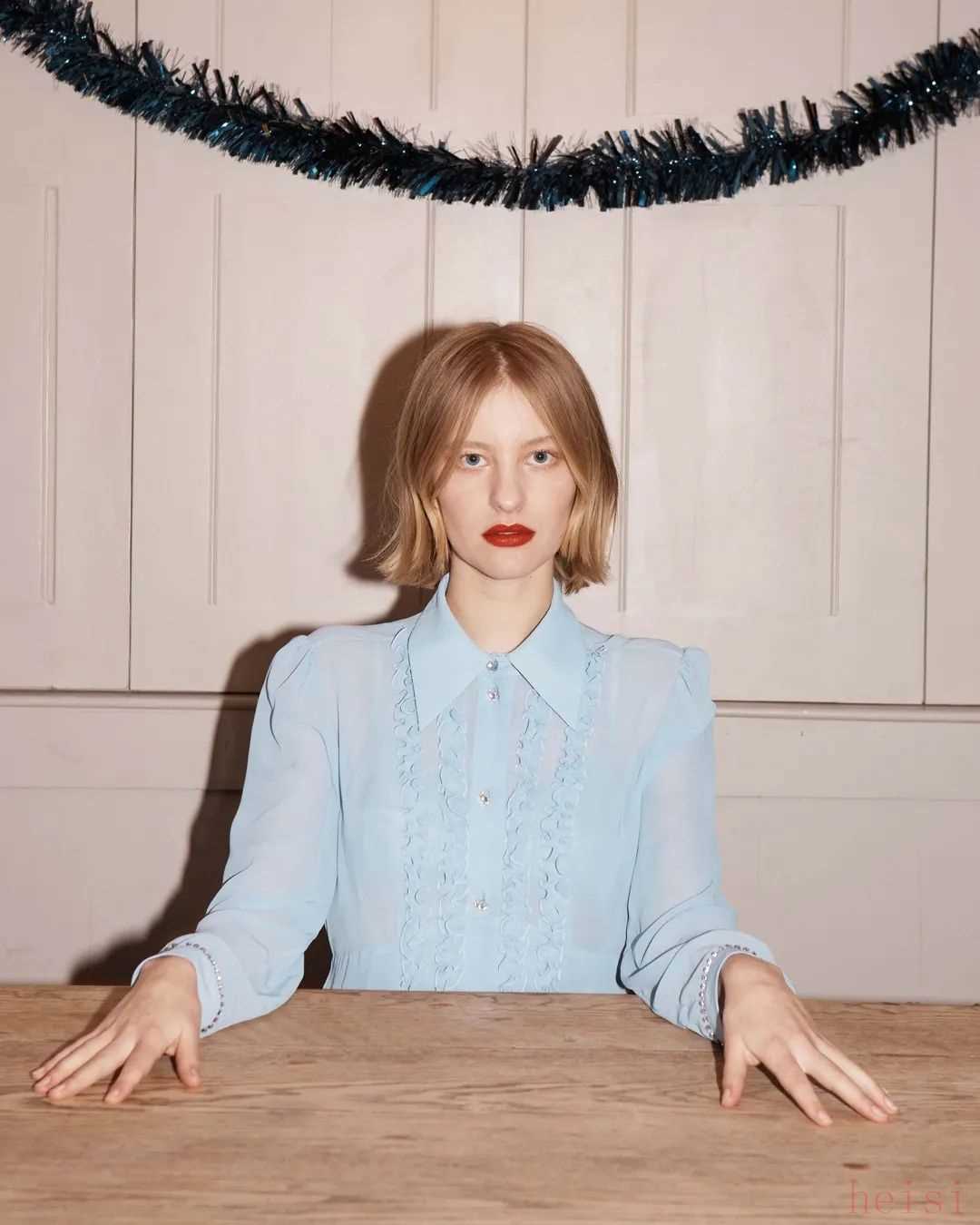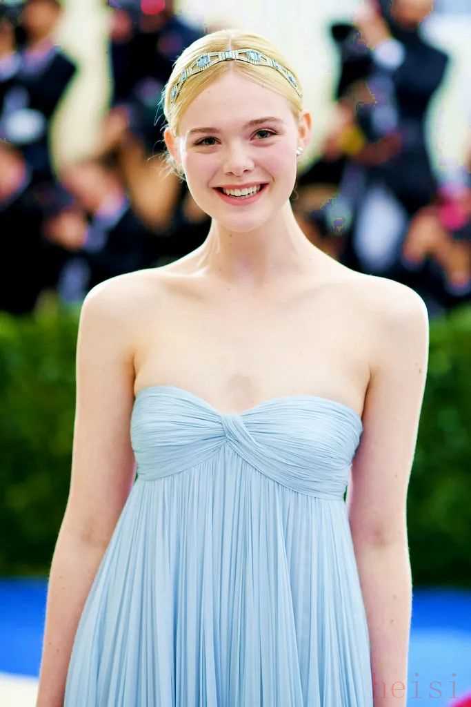 浅蔚蓝色带着通透感,所以自带仙气。尤其是在一些薄纱、雪纺面料上,简直仙气飘飘~小仙女Elle Fanning范宁妹妹就很喜欢这个颜色,白肌胜雪。▼