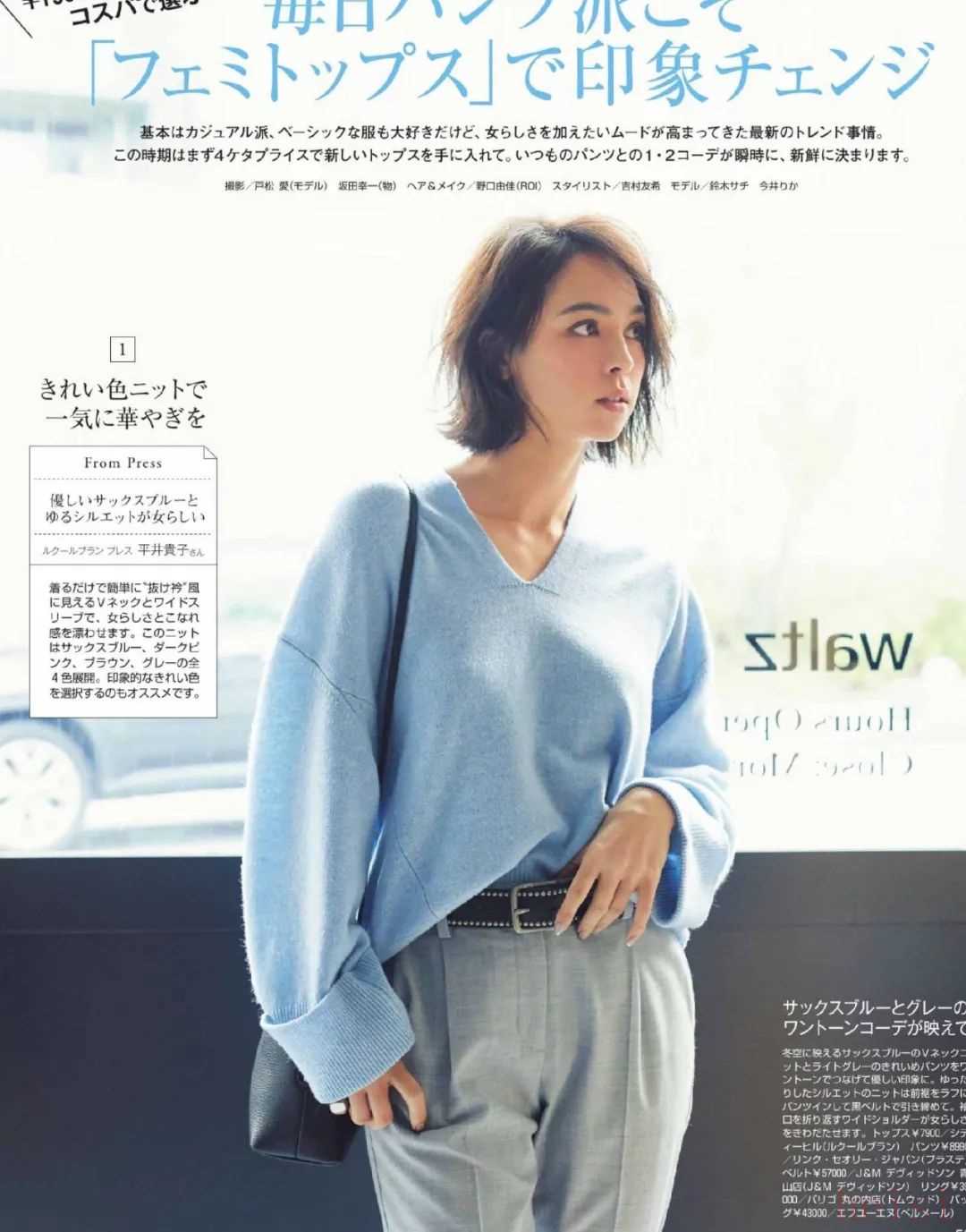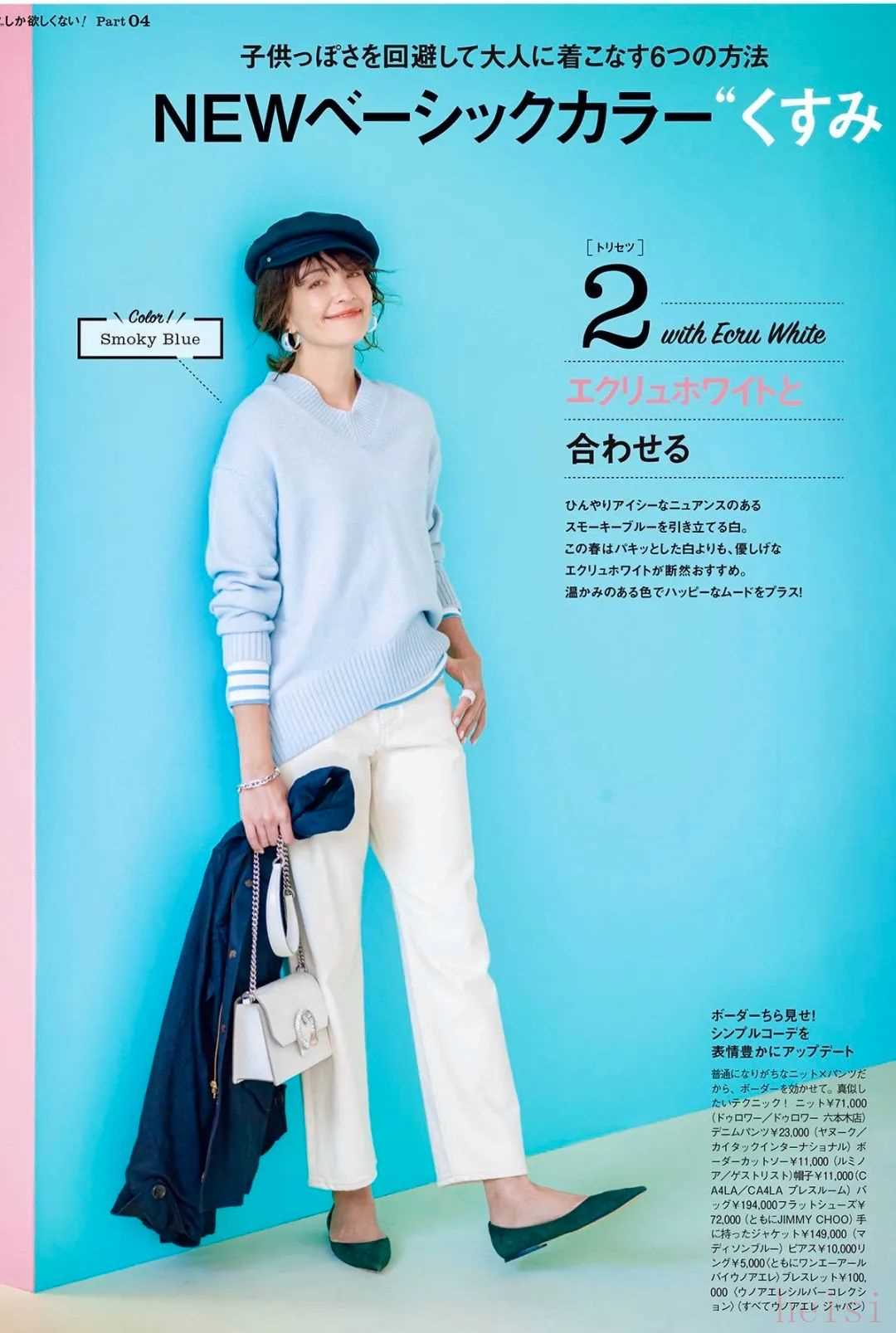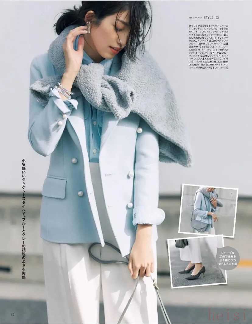 浅蔚蓝色因为白色含量高,也很适合我们亚洲人。日杂里经常能看到。▼