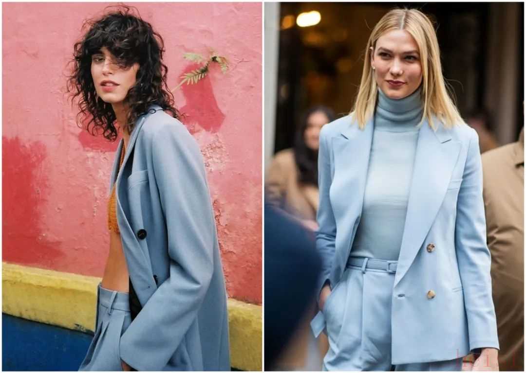 好看的蓝色很多。浅蔚蓝色最大的特点是,它里面加入了大量的白色,清爽值会更高,很适合春夏。对比一下冬天很火的雾霾蓝色(左),它的灰度更高,浅蔚蓝色更明亮(右)。▼