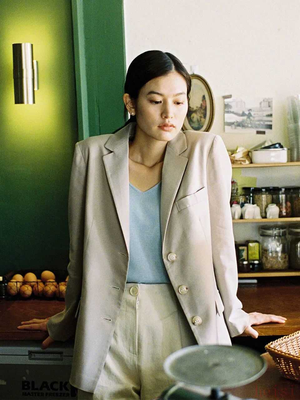 浅蔚蓝色西装即使穿一套也不难驾驭,好清凉!▼