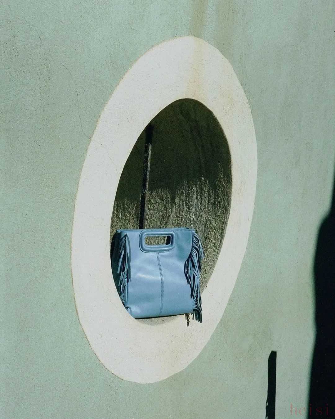 Maje今年主打一款流苏手拿包,浅蔚蓝色让包包看起来更灵动。官网约2285元。▼