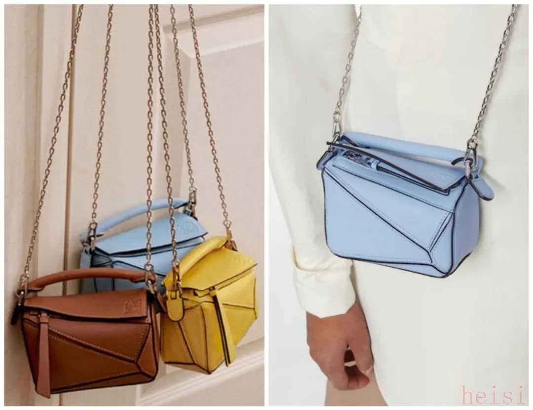 罗意威Loewe今年出的Nano Puzzle也有浅蔚蓝色,这款很小巧,肩带是银色的,更时髦年轻,但容量有点小。官网约10500元。▼