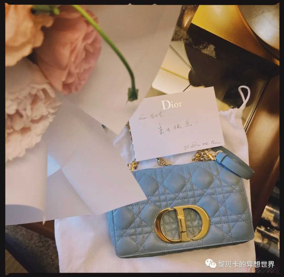 Dior刚出Caro包的时候,我就给大家种草过了,它是牛皮的,但皮质细腻,手感蛮好。我今年生日也收到了一只,就是蓝色的!超喜欢~▼