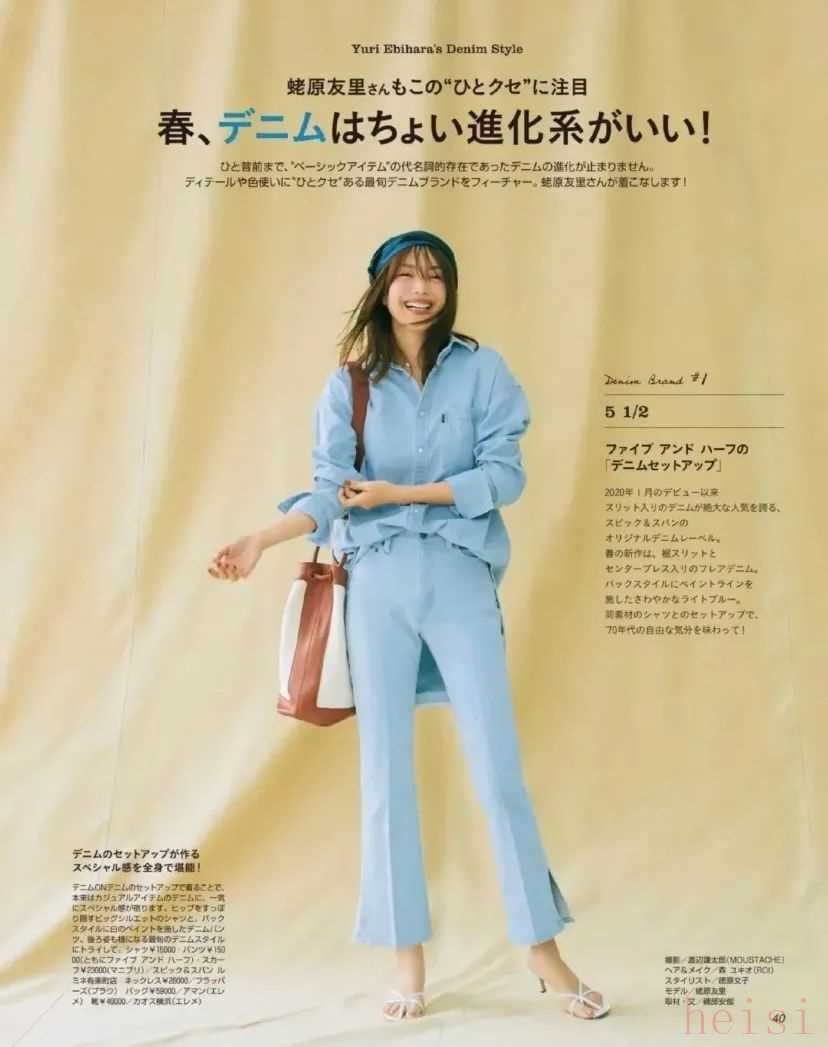 配裤装清爽利落。裤子也可以选蓝色系的,穿一身很美。有没有发现日杂模特拍照都挺爱笑的,看着心情很好。