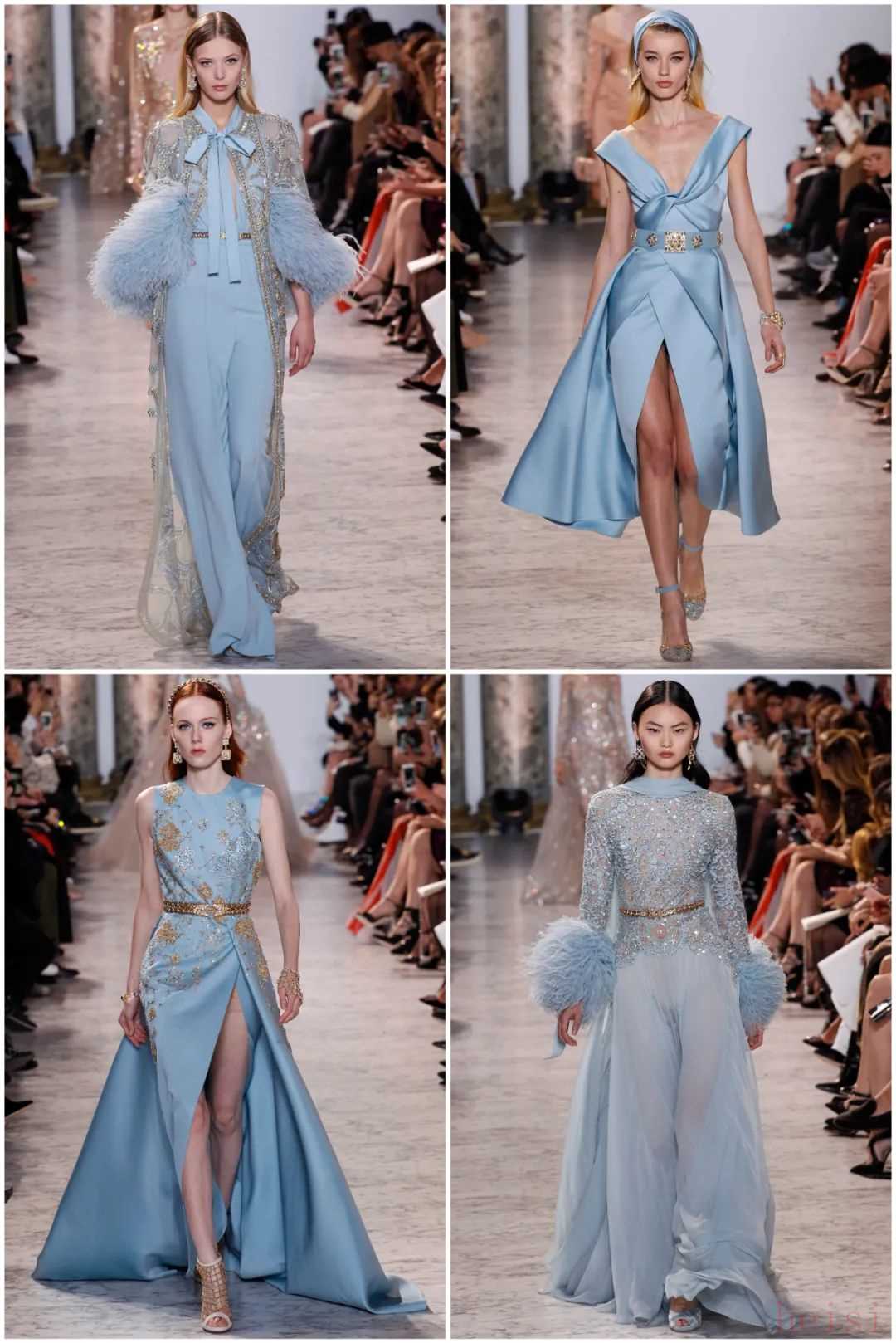 有没有发现,很多仙女裙都是浅蔚蓝色的。印象很深的是Elli Saab 2017年的那场高定秀,浅蔚蓝色太仙了~▼