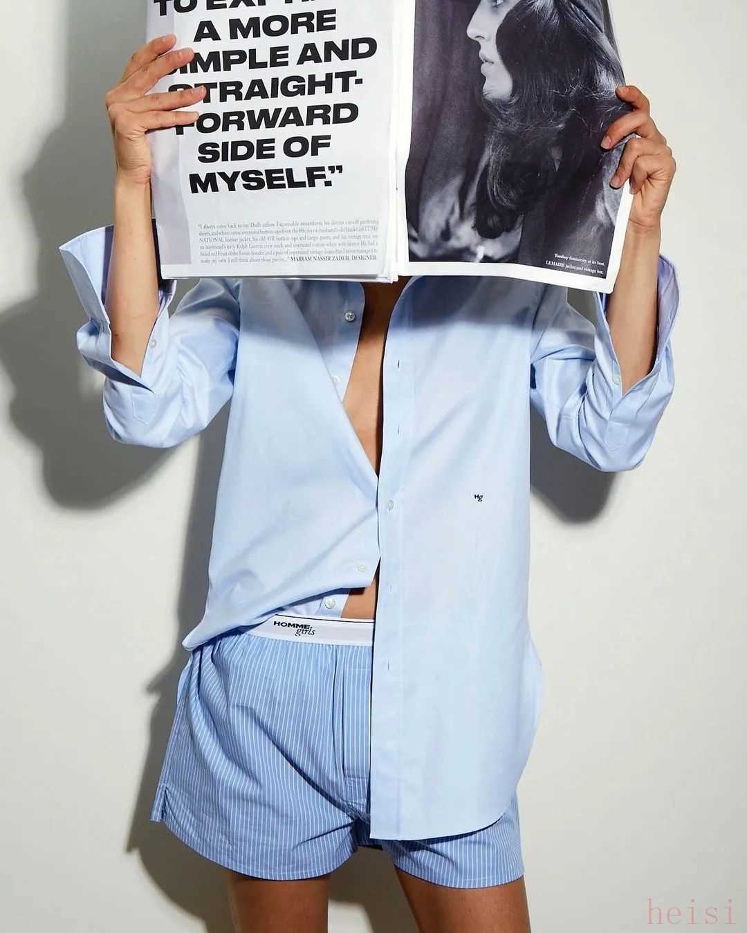 浅蔚蓝色衬衫还挺常见的,可以算是衣橱里的必备款了,也很适合作为上班装。