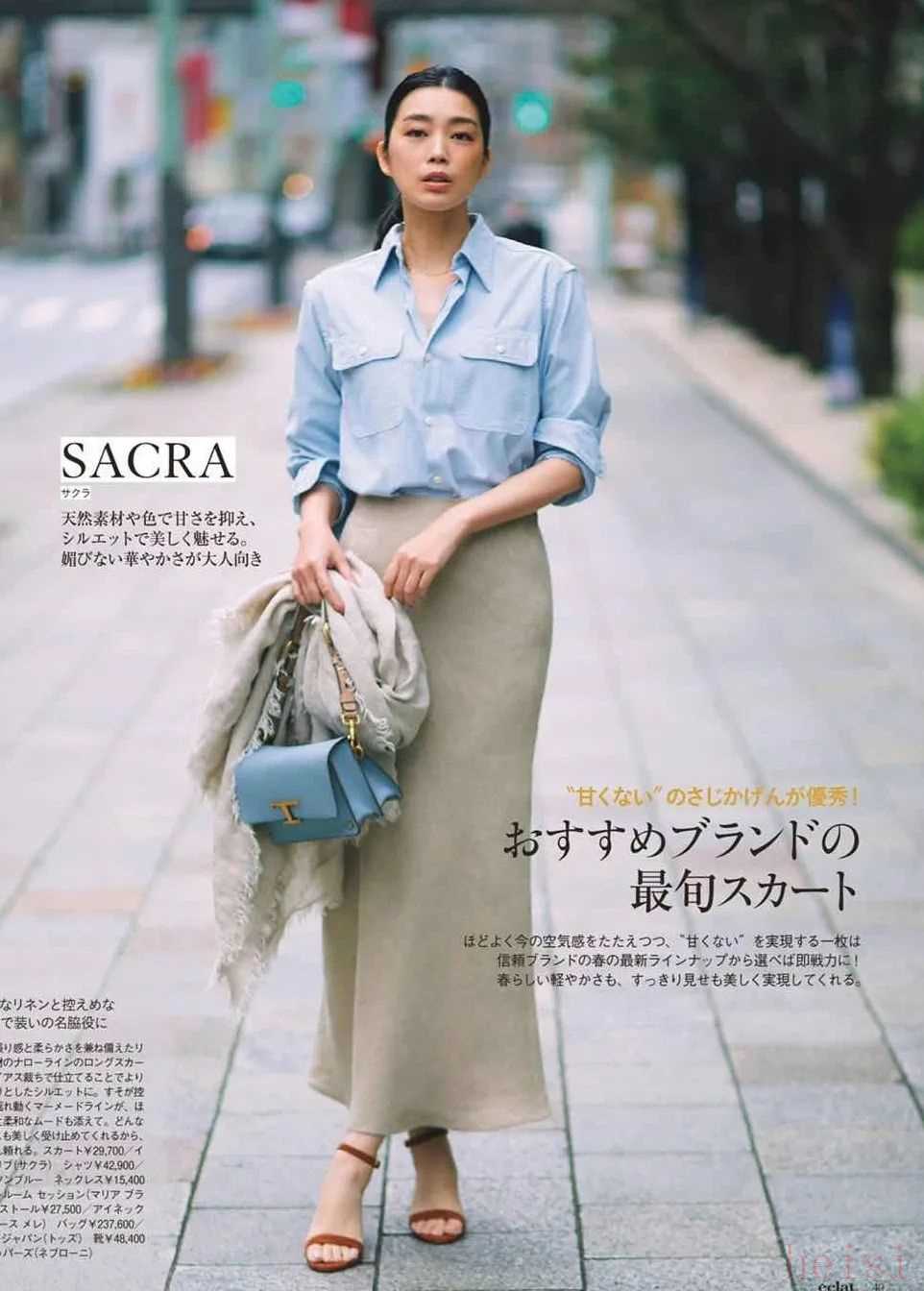 想要件更特别一点的蓝衬衫,可以选丝质的,质感更好,女人味也会更浓一些。换个隆重点的下装,还能去参加一些重要场合。▼