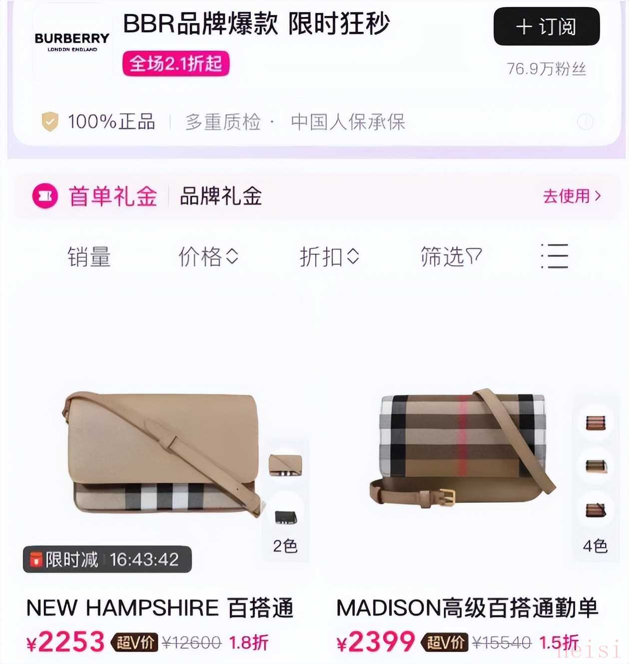 例如之前平台“限时狂秒”中被打到2折以内的burberry,刚一上架就被抢购一空,足见消费者对于“折扣”的热衷。